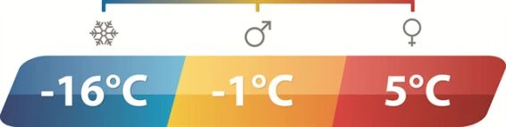 - Tcomfort:This is the lower limit that a ‘standard’ woman can sleep comfortably in a relaxed position, such as sleeping on their back. We consider this and above the optimum temperature range for everyone’s sleep comfort over time but, given the gender specific character of this measurement, we use the female symbol when space prohibits the use of ‘Tcomfort’ – such as sleeping bag labels.