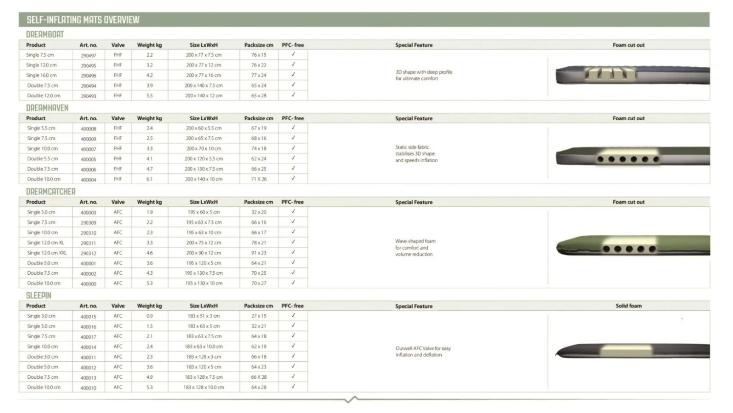 The Dreamcatcher collection of mattresses, highly popular with campers desiring a comfortable, self-inflating mattress, with a thicker depth of 12cm, and a better width and length, with an XL design.