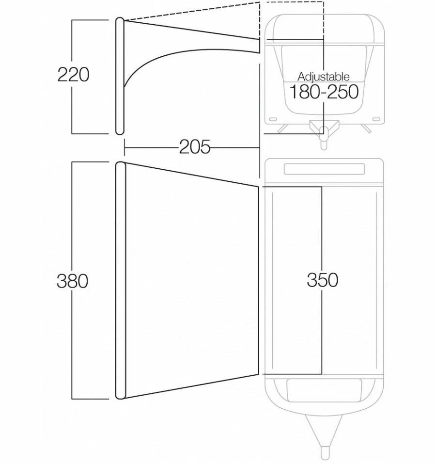 Perfect for adding an auxiliary shelter to any camper van, motorhome or caravan, the Vango Sun Canopy is an inflatable, fixed shelter, perfect for creating shelter from the elements external to the van.
